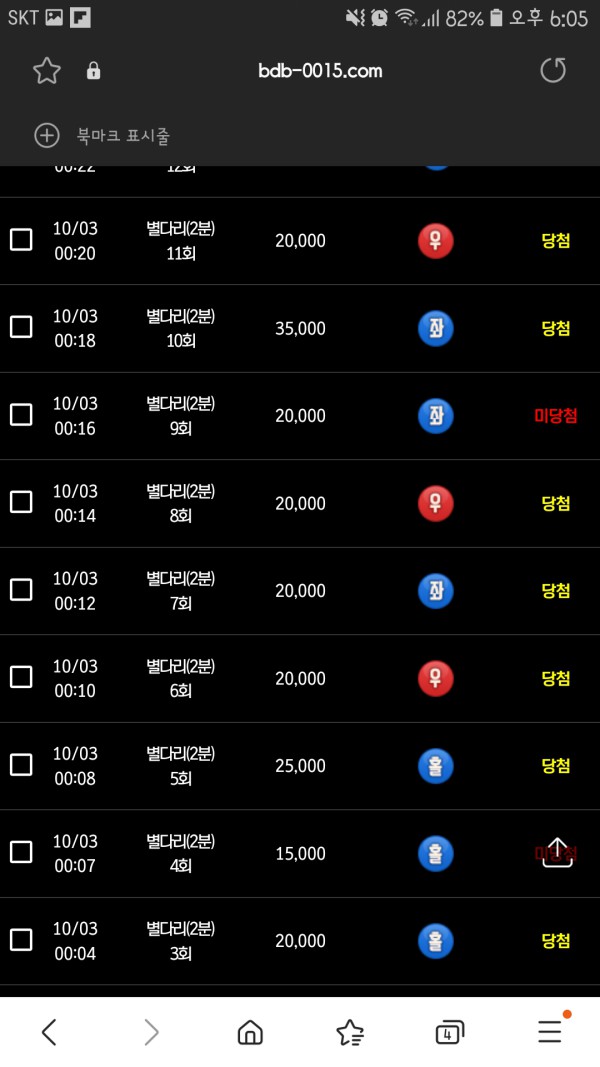 다르곳은  별다리1분만 베팅가능하고 별다리2분 별다리3분은 막혀있는데